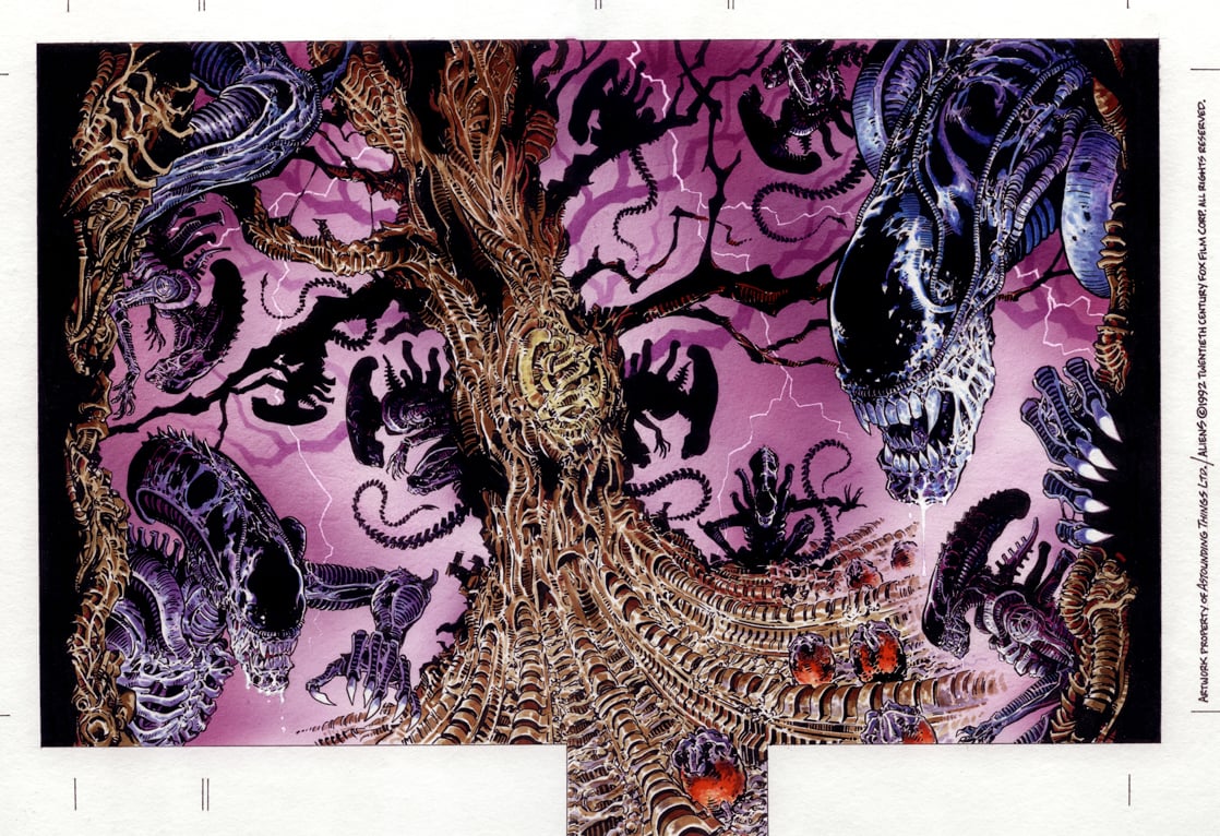 Alien Artwork for BoxBoy, a product related to the Gameboy. Original line and Colour Artwork Pencils, Inks. 45cmx28cm