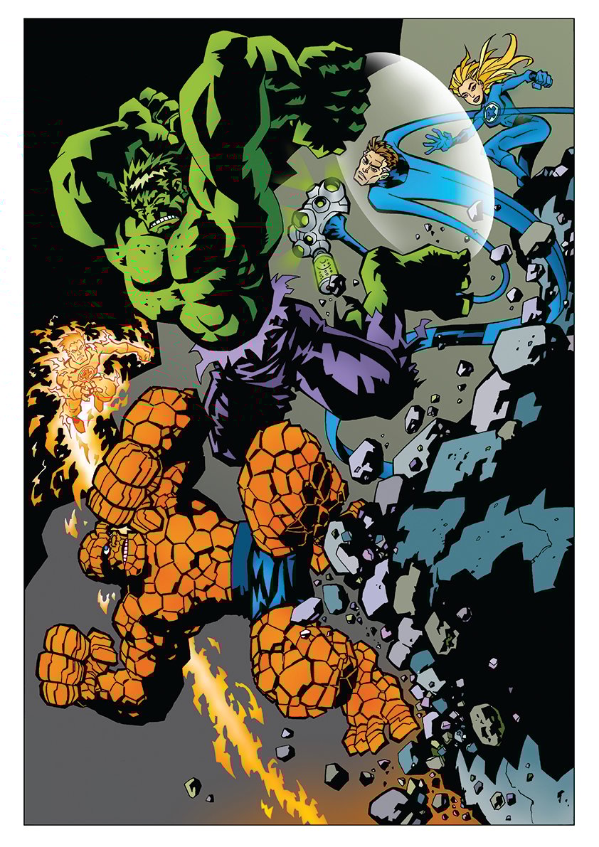 Signed print. A4 The Fantastic Four track the Hulk, using Reed Richard's Gamma Sniffer doohickey! Ben runs his mouth, Hulk takes offence and it all kicks off!